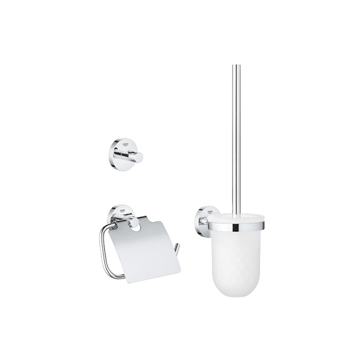 Das GROHE Essentials WC-Set vereint drei unverzichtbare Badezimmer-Accessoires in einem Set. Das Set umfasst eine Toilettenbürstengarnitur, einen Bademantelhaken und einen WC-Papierhalter mit Deckel – alle in Chrom Glanz. Diese Produkte passen perfekt zusammen und sorgen für eine stilvolle sowie funktionale Lösung in Ihrem Badezimmer.