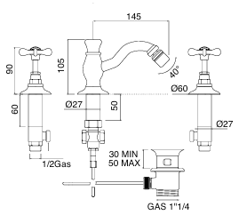 - 3 Loch- Bidetbatterie, mit Abfluss