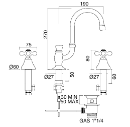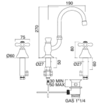3 Loch- Waschtisch-Batterie, hoher Auslauf mit Abfluss