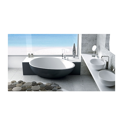 Die freistehende Luxus-Badewanne Modell BAHIA von MASTELLA, Italien, bietet eine perfekte Kombination aus exklusivem Design und höchster Funktionalität. Sie ist aus hochwertigem Steinguss mit Cristalplant-Materialtyp gefertigt, was sie besonders langlebig und pflegeleicht macht. Diese Badewanne wird in einem Guss hergestellt und ist in einer weißen matten Oberfläche gehalten, die ihrem eleganten Look entspricht.