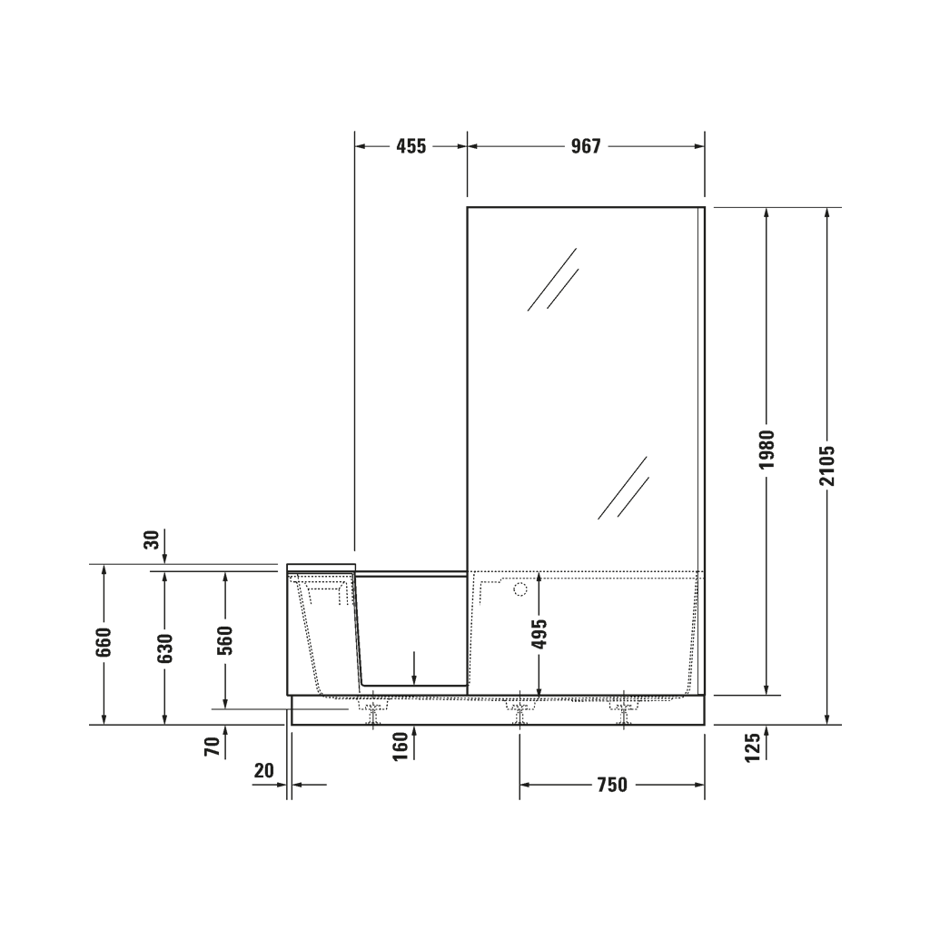 Duravit Shower + Bath – Badewanne mit Tür, Ecke rechts