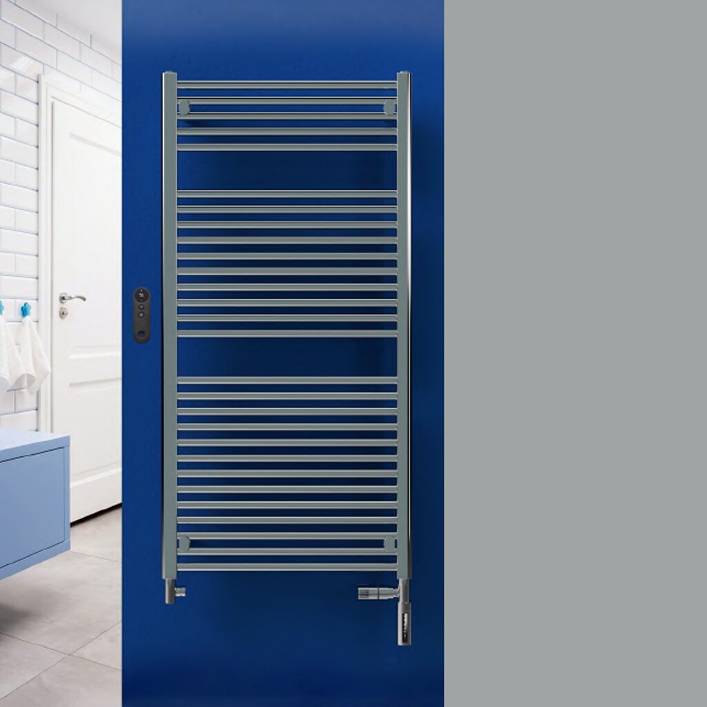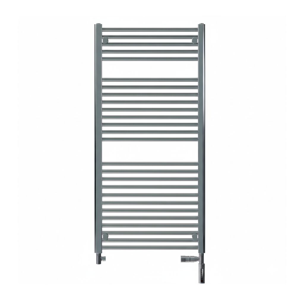 Das Modell BDce in Chrom bietet auf kompaktem Raum eine Leistung von 300 Watt – ideal für kleinere Bäder oder Gäste-WCs. Der rein elektrische Badheizkörper kommt vorgefüllt und wird zusammen mit einer Heizpatrone sowie einem Regler (Typ Slim, Chrom) geliefert. Beide Komponenten montierst du bauseitig. Auf Wunsch sind Regler mit Zusatzfunktionen erhältlich.