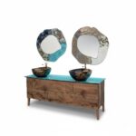 Edles Design trifft traditionelles Handwerk: Das POSITANO Badmöbel kombiniert sorgfältig ausgewähltes, antik geschliffenes Eichenholz mit kunstvoll glasierter Lavasteinabdeckung von Domiziani – und schafft so ein stilvolles sowie individuelles Möbelstück fürs Bad. Zwei Schubladen mit Tip-On-System und präzisem Schwalbenschwanz-Inlay bieten praktischen Stauraum, während Maße, Dekor, Oberfläche sowie Fußausführung ganz nach Wunsch wählbar sind. Durchdachte Details wie Bohrungen für Armatur und Siphon nach Vorgabe runden das hochwertige Gesamtbild funktional und elegant ab.
