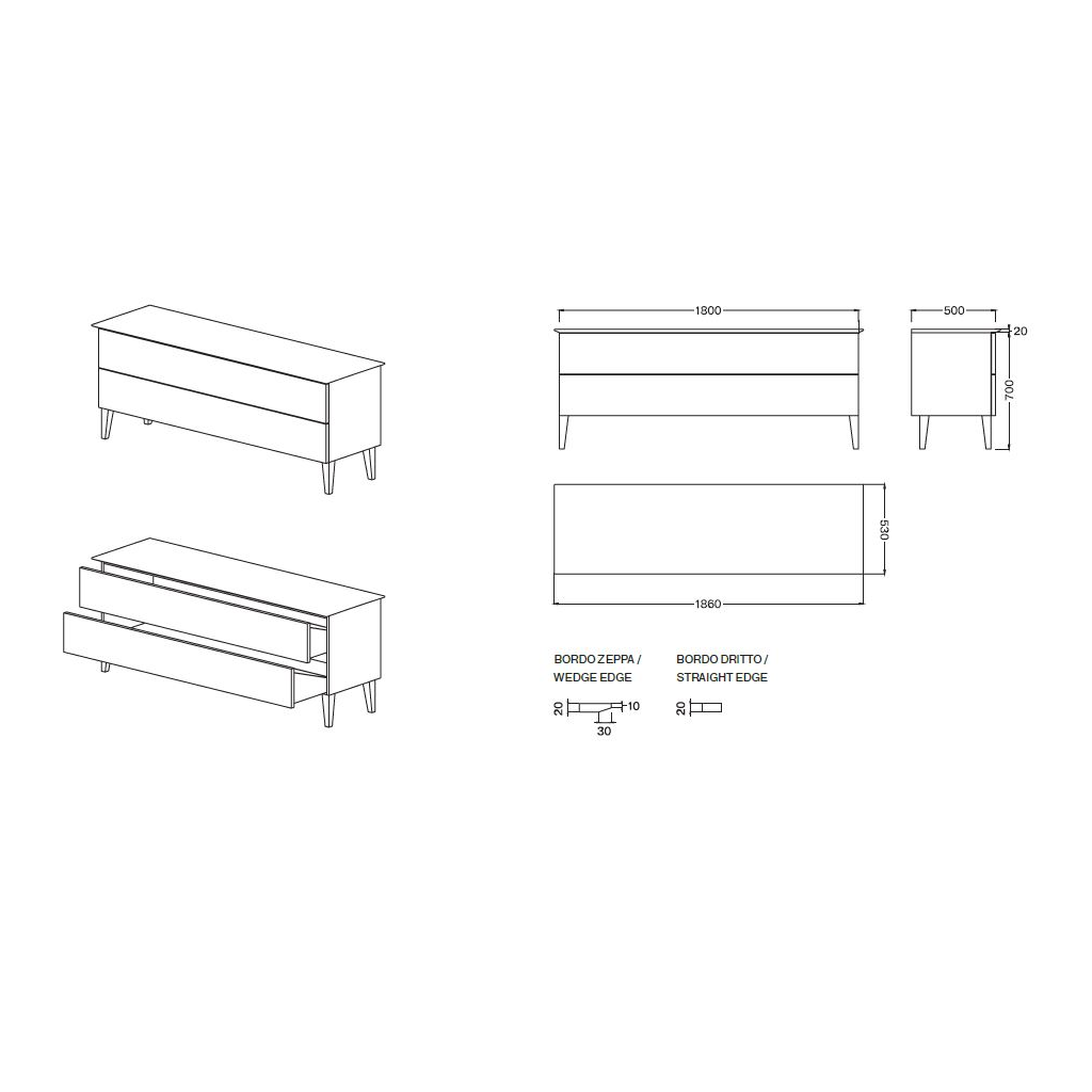 Füße: Holz oder konisch aus Metall (Farben: Weiß, Elfenbein, Graphit, Nuvola, Marrone)