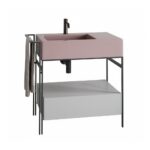 Die CIELO NARCISO Badmöbel Kombi (B=76cm) aus der Linie „Narciso mini“ bietet eine perfekte Mischung aus modernen Materialien und durchdachtem Design. Mit einem Keramikwaschbecken, einem Metallgestell in schwarz matt und einer Schublade in cemento sorgt diese Kombination für ein stilvolles Badezimmer.