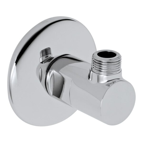 Das Ventil ist in glänzendem Chrom gehalten und wird ohne Klemmquetschverschraubung geliefert, was eine einfache Installation ermöglicht.