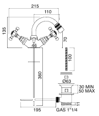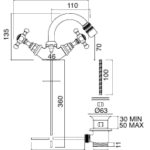 Einlochbatterie für Bidet mit Abfluss