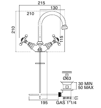 Einlochbatterie für Waschtisch Parigi