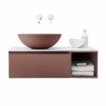 Elegantes Design mit einer stilvollen Kombination aus Terracotta Opaco und Weiß matt für ein modernes Badezimmerambiente.