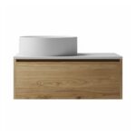 Ein modernes Badmöbel in einer edlen Echtholz-Optik mit einem minimalistischen Aufsatzbecken. Ideal für jedes Badezimmer.