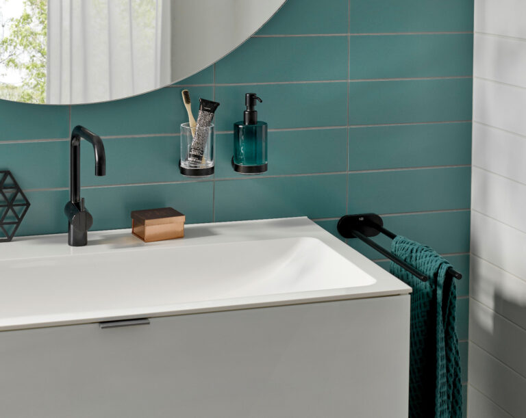 Der EMCO Glashalter mit Zahnbürstenglas aus der Linie ROUND in edlem Schwarz matt vereint Funktionalität mit elegantem Design. Die Kombination aus hochwertigem satiniertem Glas und der mattschwarzen Wandhalterung macht dieses Wandmodell zu einem stilvollen Detail in jedem Bad. Mit seiner kompakten Form und einer Ausladung von 9 cm bietet er eine praktische Aufbewahrungslösung für Zahnbürsten oder andere Badutensilien. Die Befestigung ist auf Wunsch auch ohne Bohren möglich – mit dem separat erhältlichen Klebeset.