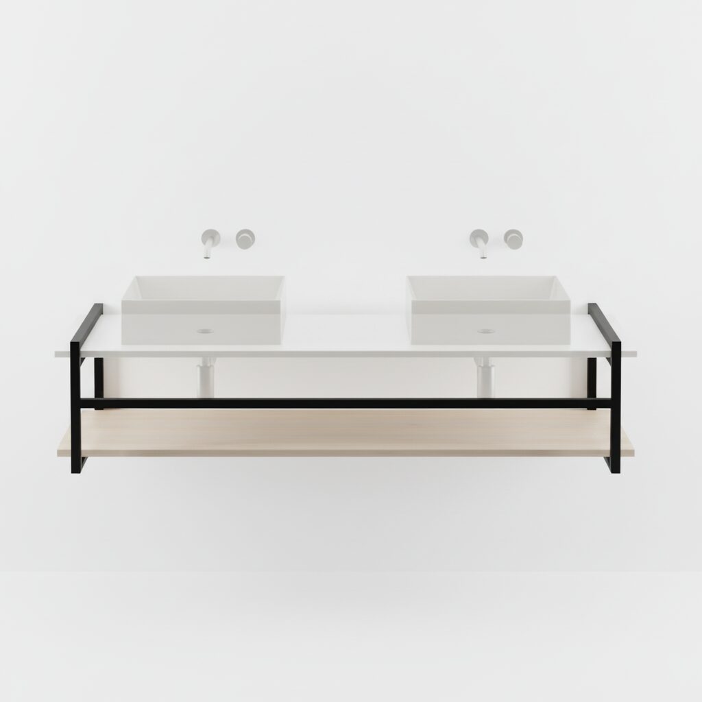 - Vorgesehen für zwei Aufsatzbecken (Preis ohne Aufsatzbecken)