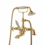 Die freistehende Wannenarmatur aus der Margherita-Linie von Sbordoni vereint klassisches Design mit moderner Funktionalität. Sie verfügt über eine Ausladung von 14.5 cm und wird inklusive Handbrause und Schlauch geliefert.