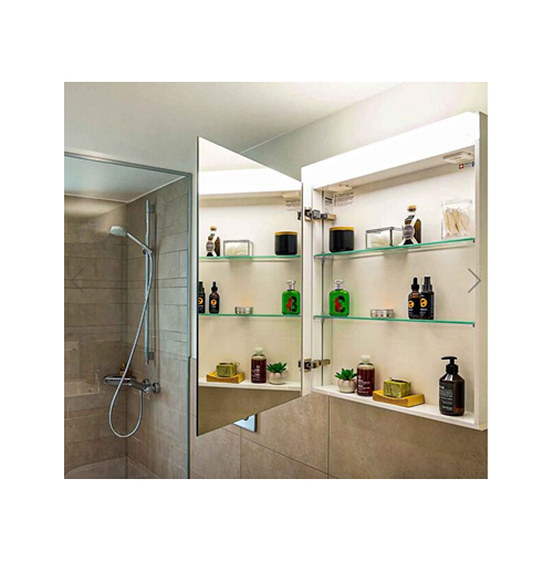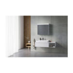 Der Spiegelschrank kombiniert moderne LED-Beleuchtung mit praktischen Ablagemöglichkeiten. Ideal für größere Badezimmer, mit flexibler Steckdosenplatzierung und hochwertigem Design.