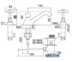 • 3 Hahnlöcher-Waschtisch-Batterie, mit Abfluss