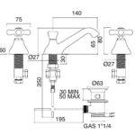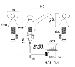 Waschtischbatterie 3 Hahnlöcher mit Abfluss