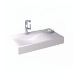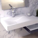 Der wandhängende Design-Waschtisch aus Mineralguss bietet eine elegante und moderne Lösung für Ihr Badezimmer. Mit einem ansprechenden Design, das ähnlich wie Corian ist, ist dieser Waschtisch in weiß matt oder weiß glänzend erhältlich und sorgt für eine stilvolle Atmosphäre.