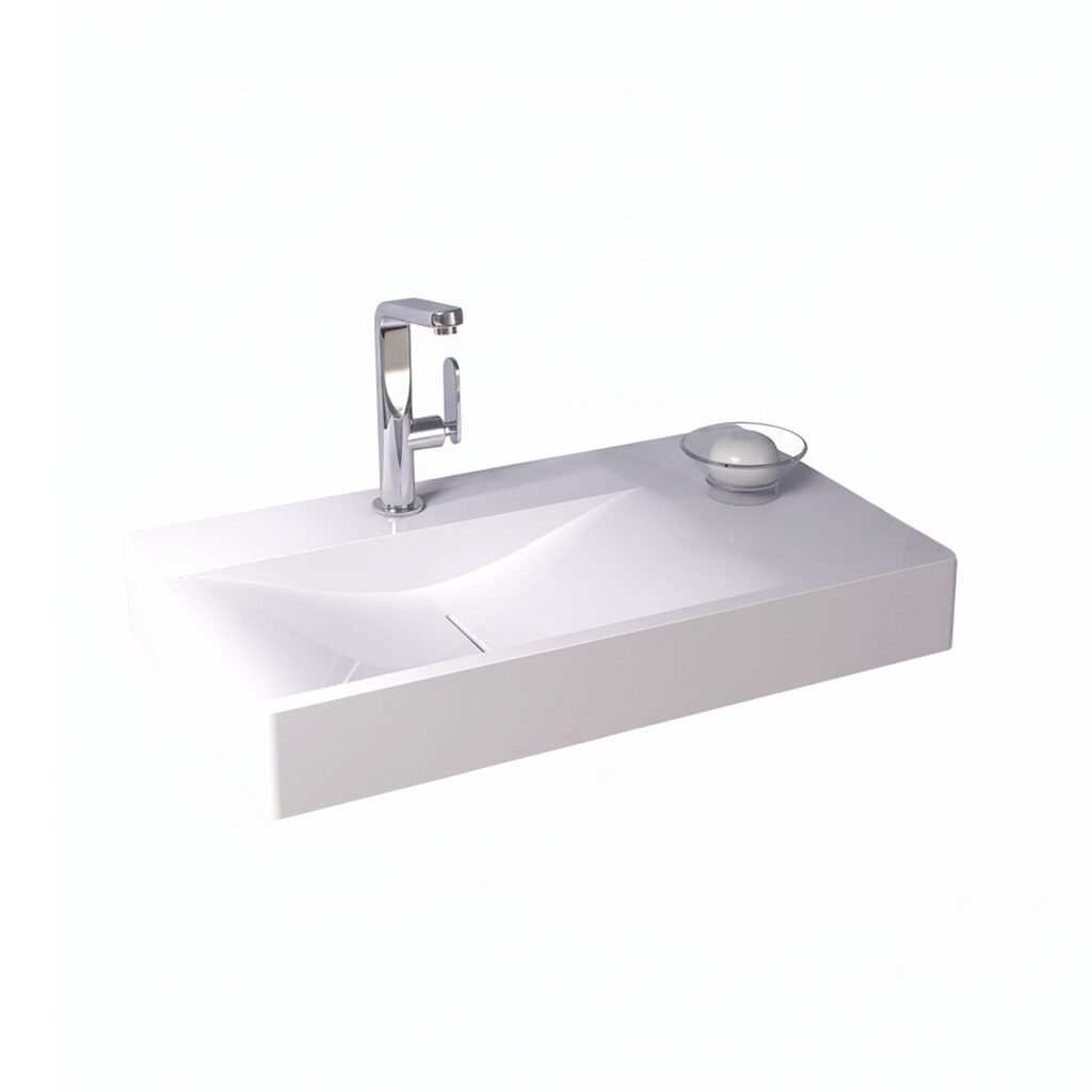 - Modell: Wandhängender Design-Waschtisch aus Mineralguss