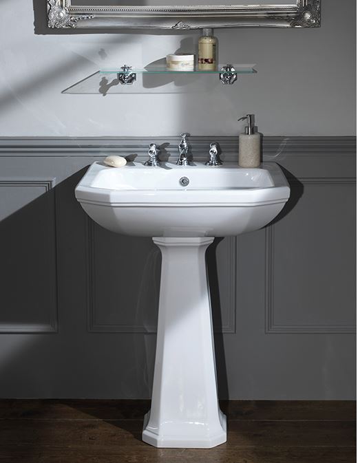 Waschtisch mit Säule (optional) aus der Silverdale Empire Linie, gefertigt aus hochwertiger Sanitärkeramik. Mit einer Breite von 63 cm und einer Höhe (inkl. Säule) von 83,5 cm ist dieser Waschtisch eine stilvolle Ergänzung für jedes Badezimmer.