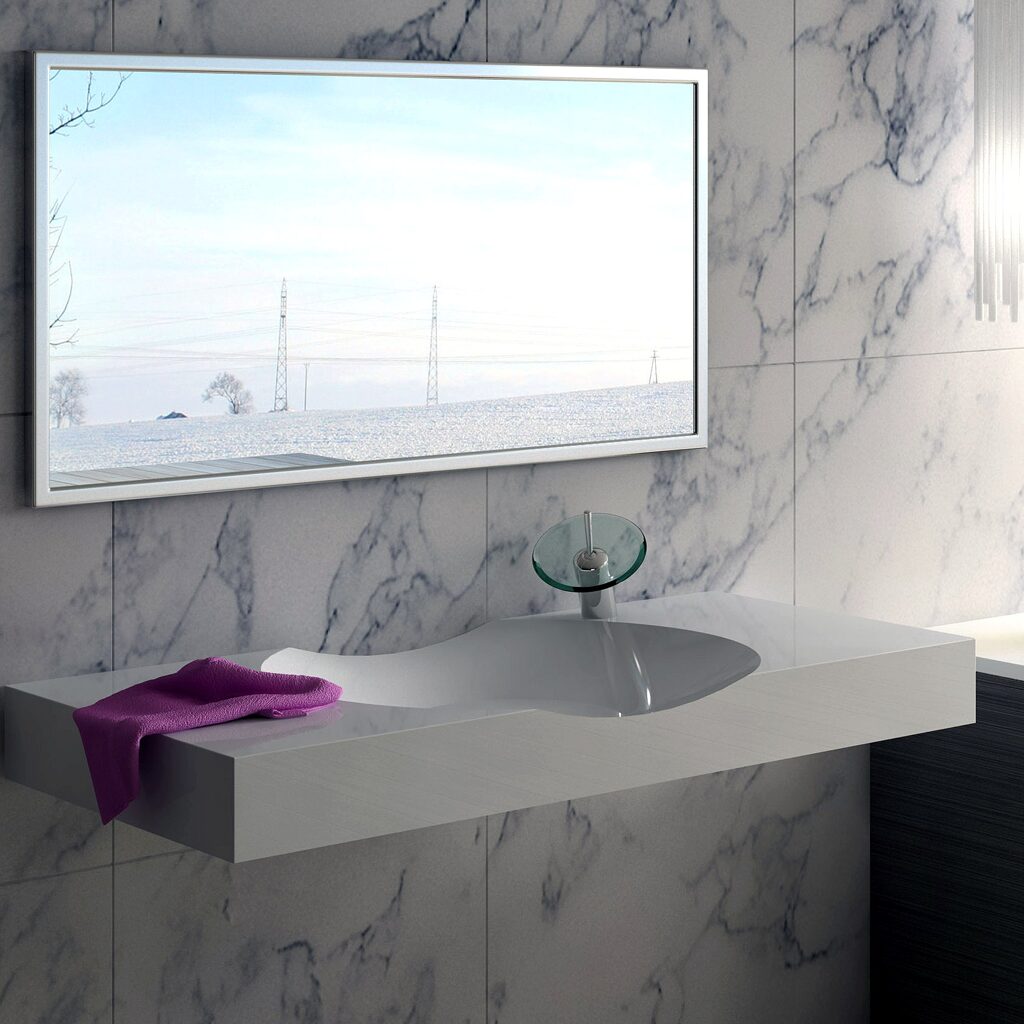 Verleihen Sie Ihrem Badezimmer mit diesem zeitgemäßen Waschtisch einen Hauch von Eleganz und Funktionalität.