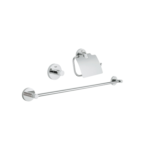Das GROHE Essentials WC- und Handtuch-Set vereint drei wichtige Badezimmer-Accessoires in einem Set. Es umfasst eine Badtuchstange (B = 60 cm), einen Bademantelhaken und einen WC-Papierhalter mit Deckel, alle in Chrom Glanz. Dieses Set bietet eine elegante und funktionale Lösung für Ihr Badezimmer.