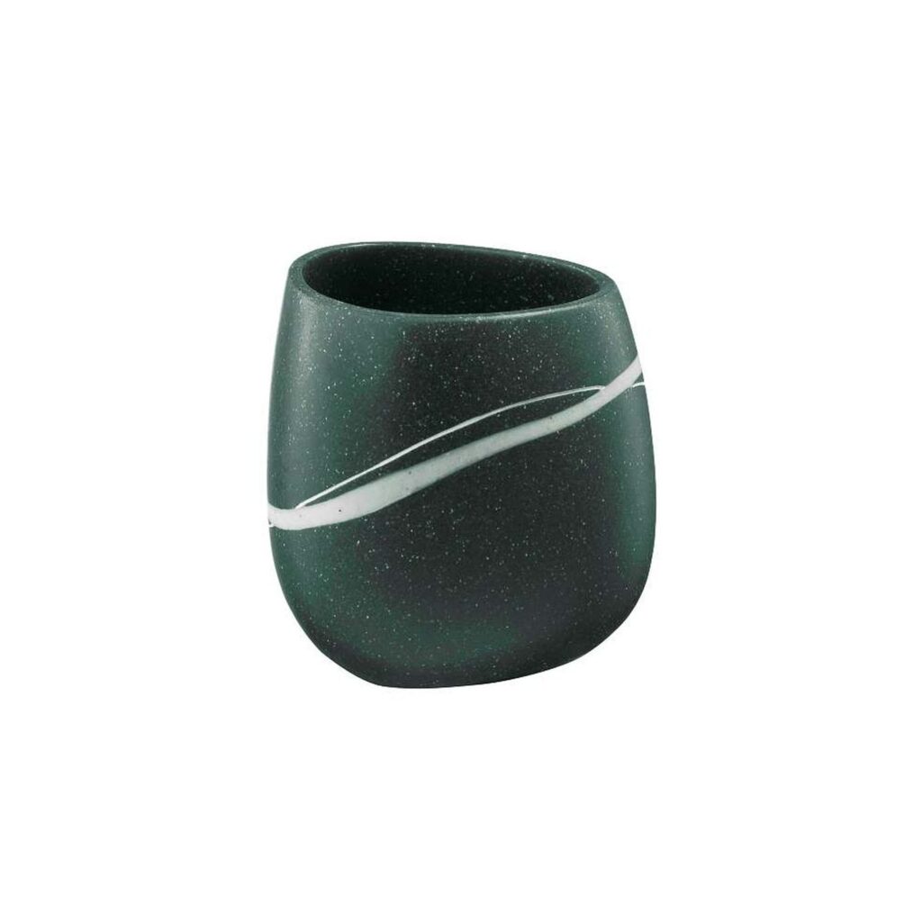 Zahnbürstenbecher aus Harz in natürlicher, steiniger Form. Das Standmodell der Terra-Linie von Neoperl verbindet Design mit praktischer Nutzung und bringt Stil ins Badezimmer.